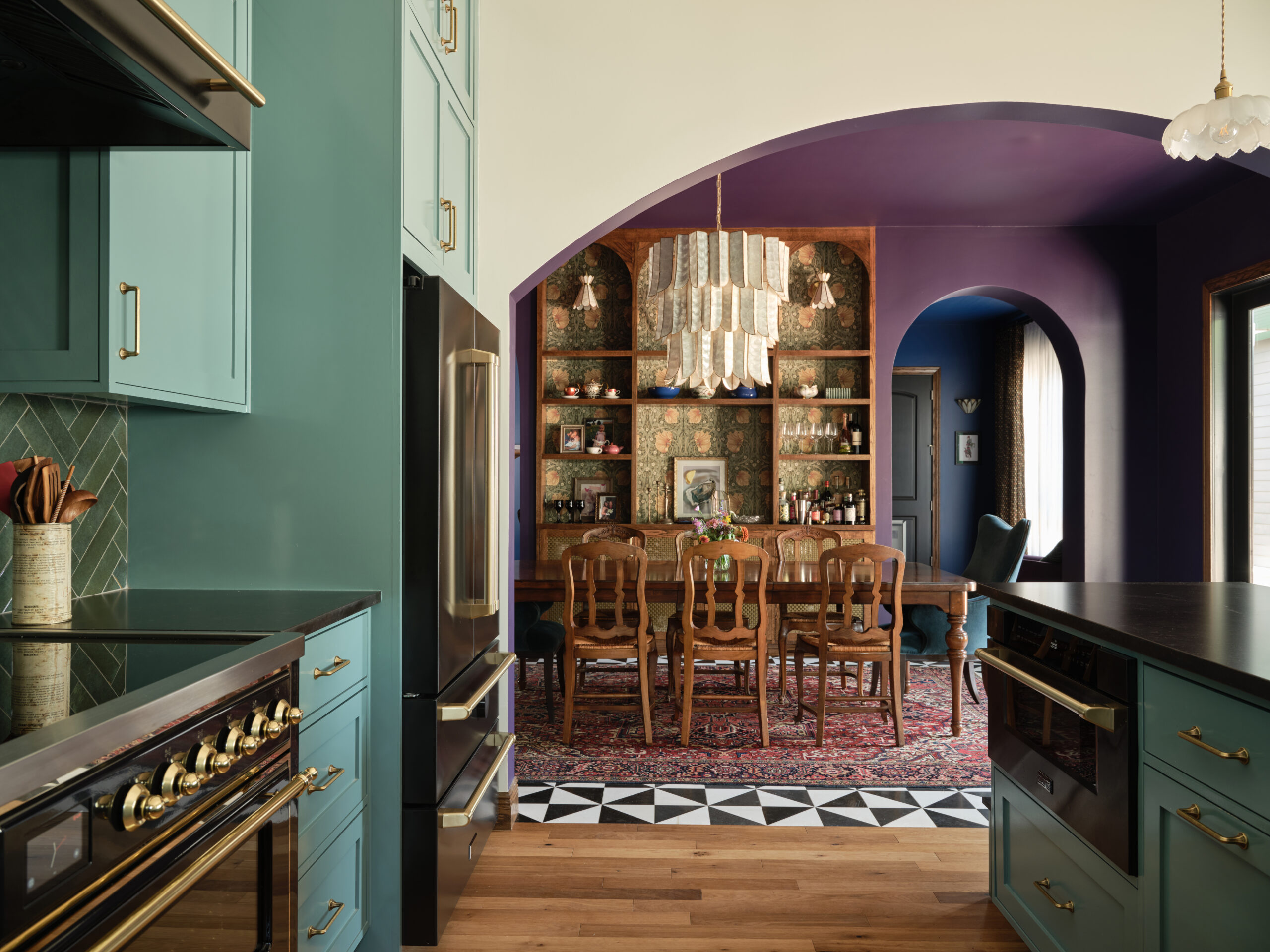 Kim Lewis leads a global multidisciplinary design studio known for its whimsical, personality-infused design rooted in fashion, color, craftsmanship and storytelling. Her work honors historical architecture while incorporating iconic vintage pieces across hospitality, commercial and luxury residential projects. For this year’s Interiors Tour, Lewis presents a remodeled East Austin Craftsman completed with Friedman General Contracting. The renovation reimagines the front parlor, kitchen, dining area, mudroom and powder room. The parlor features burgundy walls, unglazed zellige tile and herringbone wood floors, while a chartreuse lacquer island with brass inlay anchors the newly opened, skylit kitchen. Custom dining pieces, a patterned mudroom and artwork by homeowner Greg Rainford reflect the lively, creative spirit of the couple who call the house home.
