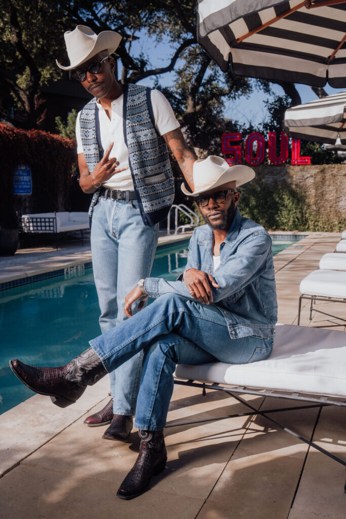 Our style inspiration comes from our Louisiana roots, where “bling bling” and “getting yo’ shine on” was born. We’re not the most flashy, but we love uniform pieces that make subtle statements. Secondly, we would say a big style influence for us is the band, Midland. When we started to explore this whole Western aesthetic that has now become synonymous with THEBROSFRESH, we gleaned from Midland’s originality and willingness to take chances with their style. Fast forward to now, we feel the utmost confidence in expressing ourselves aesthetically and we believe our style speaks as definitively as our sound does musically.