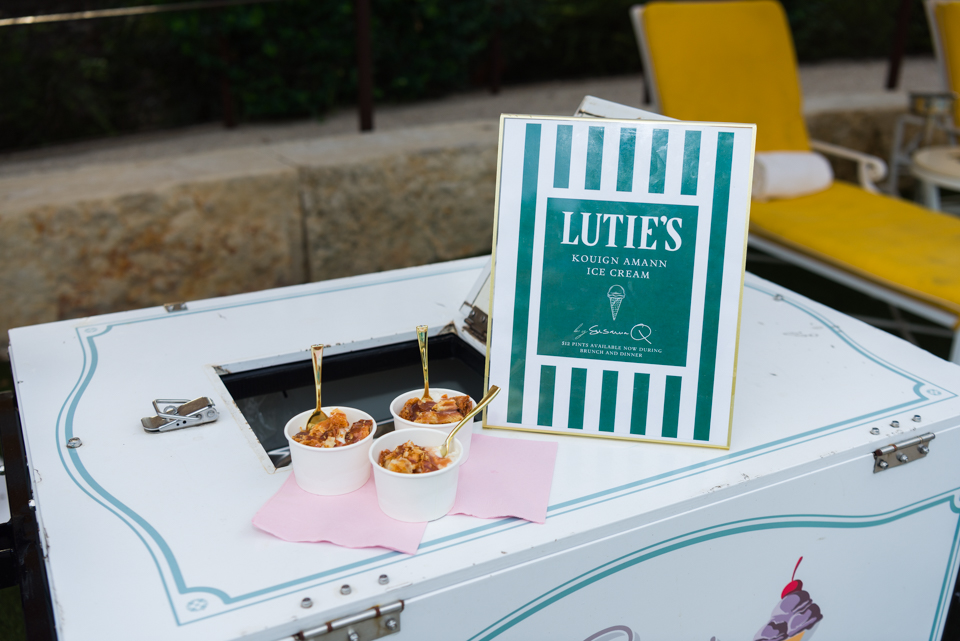 Guests appreciated playful surprises such as passed personal french fry baskets paired with delicious sauces and refreshing glasses of frosé — all just perfect for poolside enjoyment. To end the evening on a sweet note, everyone delighted in scoops of artisanal kouign-amann ice cream from Lutie’s. The combination of tunes, specialty drinks, and a lively atmosphere created a perfect backdrop for socializing and celebrating at the Estate.