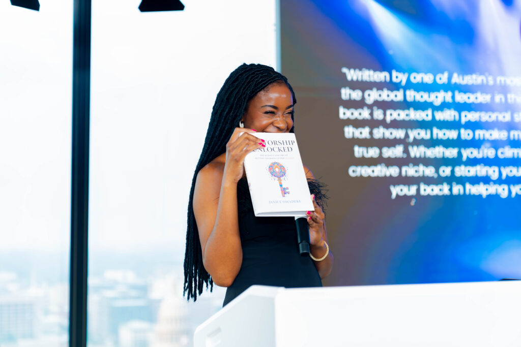 Guests gathered in downtown Austin for an engaging party where Janice Omadeke shared insights about her writing process and the impact of her book on career development