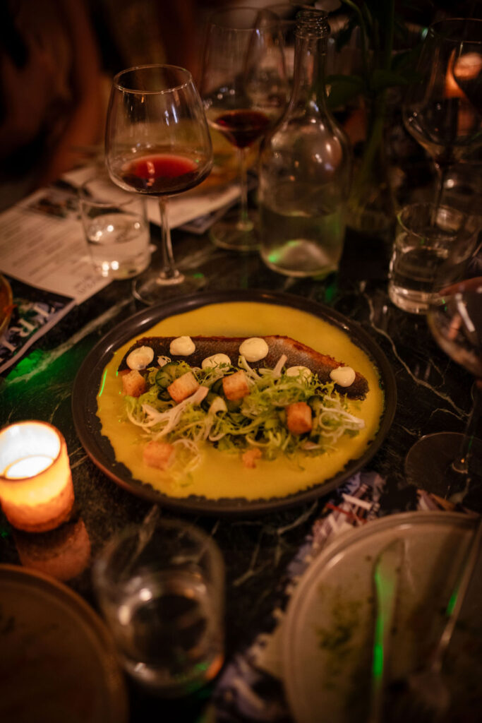 Upon entering Poeta, inside the Francis Modern Inn, guests were greeted by SNOOTI Founder Ashley Skubon with a welcome glass of sparkling wine. The 4-course Chef’s Tasting Menu & Sommelier Guided Fine Wine Pairings from Boutique European Vineyards commenced with the first course.