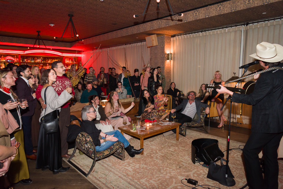 An intimate holiday gathering in The Quill Room featured festive toasts, community cheer and a special live set from Zella Day and Jesse Woods