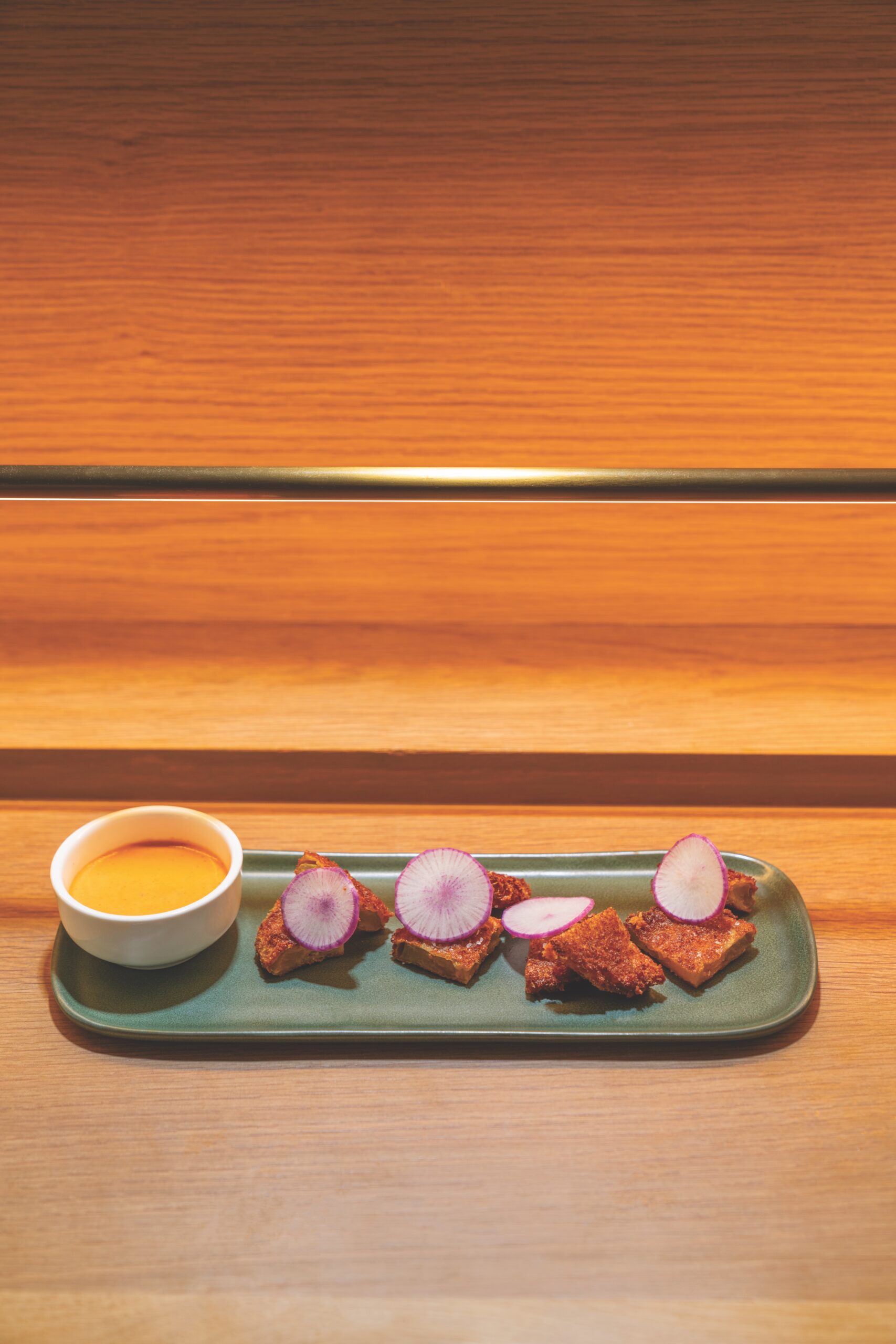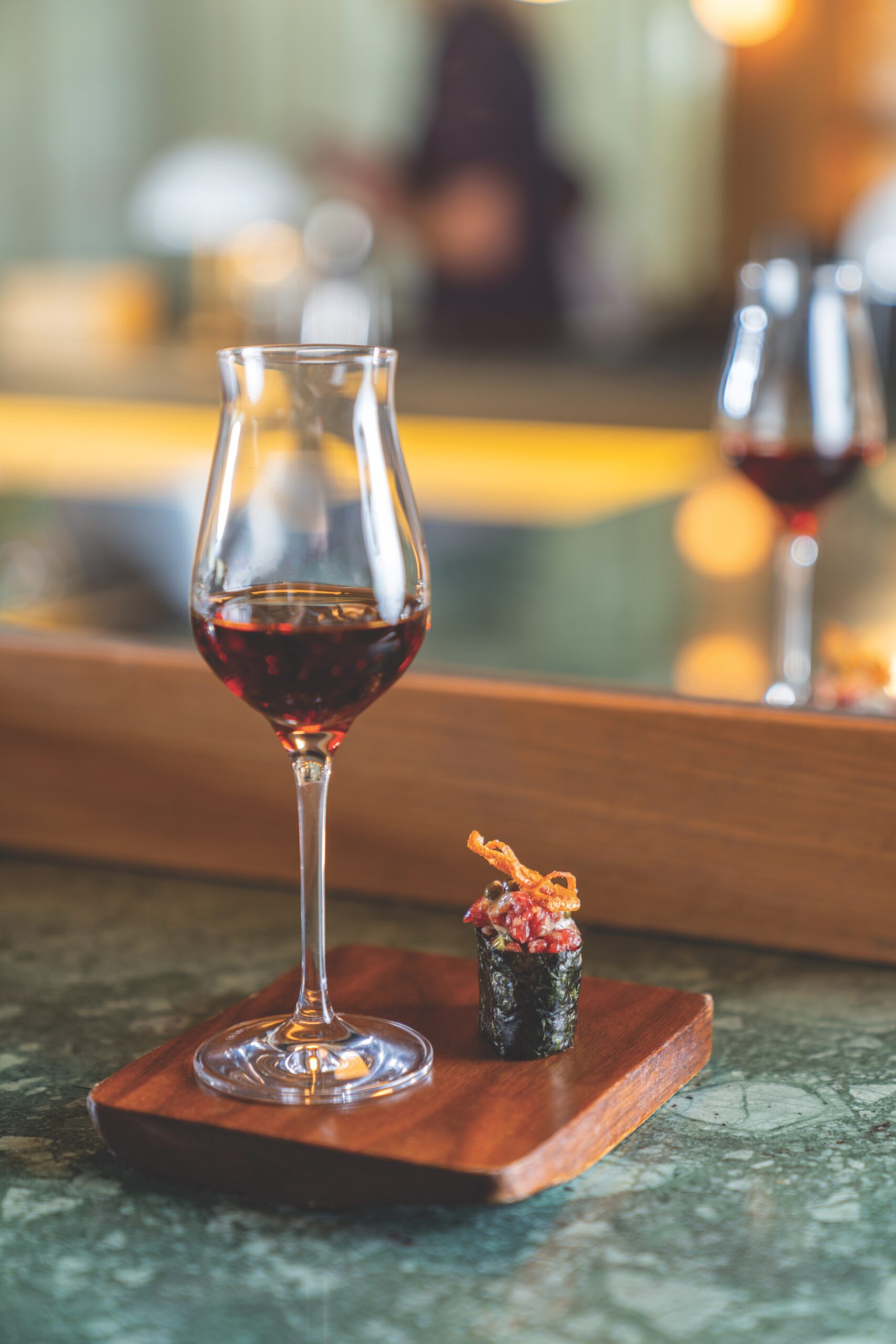 Uchibā’s izakaya experience isn’t just about hot food; it’s a celebration of sushi as well. The sushi at Uchibā is a delightful blend of traditional sushi craftsmanship with a contemporary twist. It complements the hot dishes, like kinoko dumplings, and creates an explosion of flavors. Cole and his team have also meticulously crafted a bar program that showcases rare Japanese whiskeys and innovative drinks, such as a deconstructed old fashioned with A5 beef fat washed Suntory whisky.