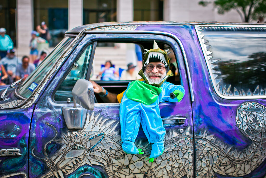 Designed to “bring the parade to the people” the Main Street Drag is an opportunity for Art Cars and their artists to visit schools, hospitals, nursing homes, developmental facilities, and other locations where residents may not be able to participate on their own during the Art Car festivities.