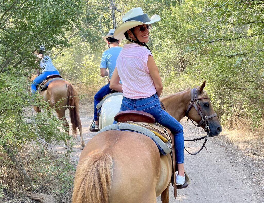 In full disclosure, we have very little experience on horseback, but any nervous jitters were immediately quelled when meeting with the friendly and knowledgeable team leading the horses. For safety, you can don an optional helmet that happens to be masked as a rather cute cowboy hat. The staff questions your level of riding experience then pairs you with the perfectly tempered horse to suit your skill set. Then off you go on a ride along the shady trail through rolling hills of countryside. It was a memorable and dreamy experience that is a “must do” at the Lost Pines Resort.
