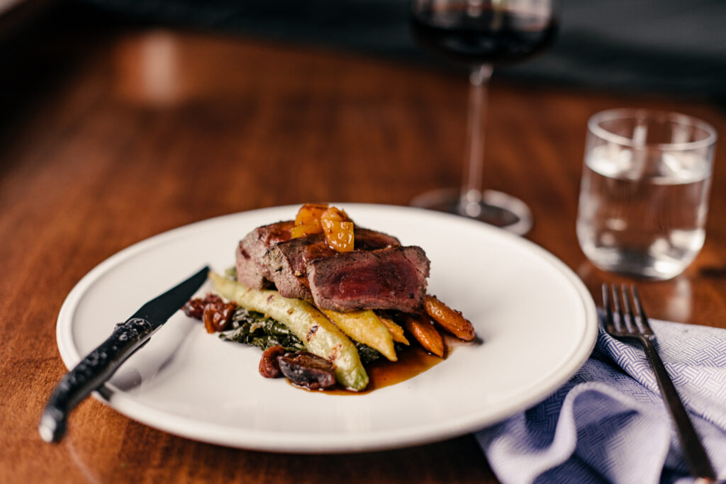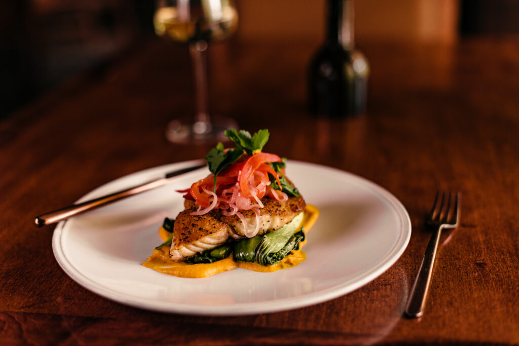 While traditional steak dinners are certainly expected and treated with culinary respect at this true Texan resort, the dining options at the Lost Pines Resort are varied and interesting — frankly with an unexpected, elevated spin. Upon checking into the resort, we ran into some old friends (as you do just miles from Austin) who were eager to suggest their favorite can’t-miss cocktails at Maude’s. An indoor-outdoor, casual, cocktail-focused concept, Maude’s is named for the expansive pecan tree that sits outside on a large, inviting terrace. You’ll find sharable charcuterie and snack plates along with some inventive and delicious cocktails. Don’t pass up the Apricot Mezcalarita or Maude’s Floral Garden.