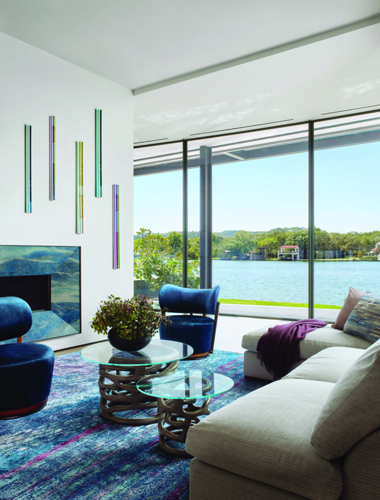 Laura Britt, the president and managing principal of Britt Design Group, describes the Red Oak Residence as a living piece of art. “The finishes, patterns and colors of each piece were thoughtfully chosen to mimic the fluidity and reflective qualities of the surrounding water,” says Britt.