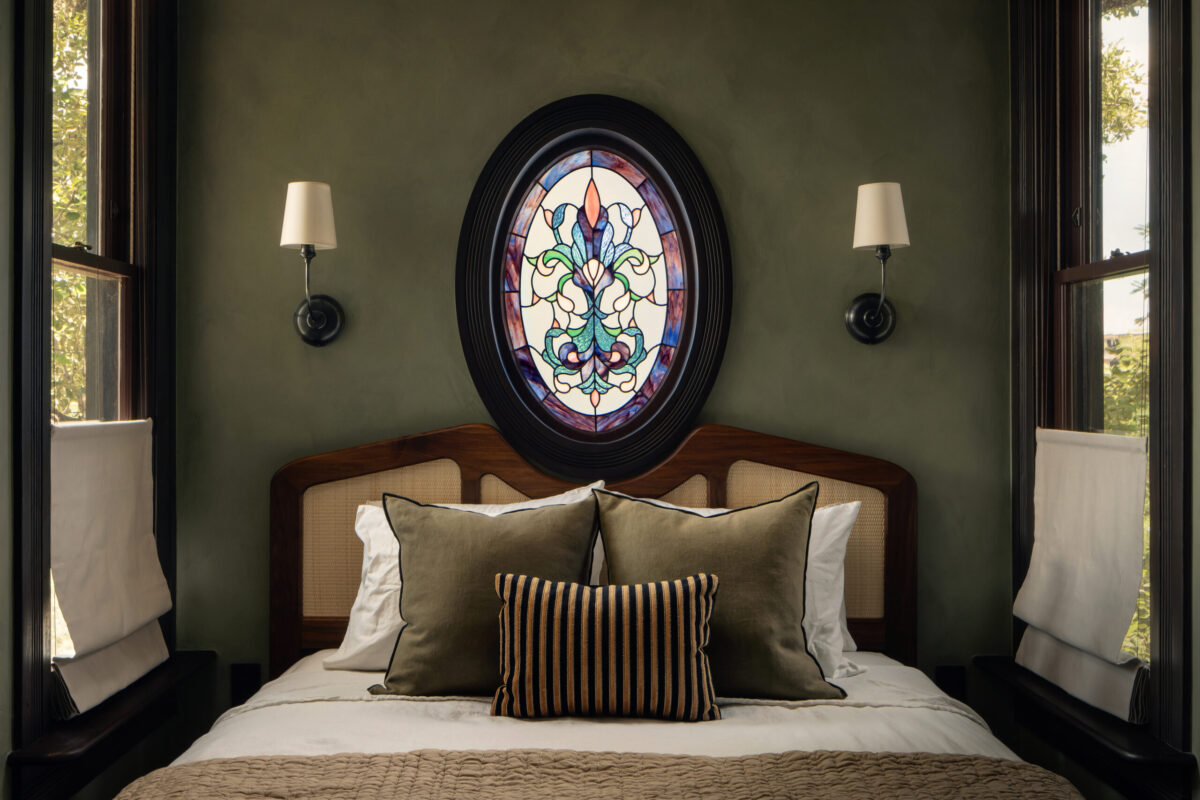 The new volume bridges the original parlors and bedrooms to an open-concept living area grounded in Texas Lueders stone and white oak, while a grand curvilinear staircase — fabricated by Drophouse Design — stitches the floors together. Throughout, there are playful patterns, rich textiles and ambient lighting for spaces that feel both intimate and moody, as well as airy and expansive. Its crown jewel, the rooftop widow’s walk, is a quiet perch to reflect on the ever-evolving city below.