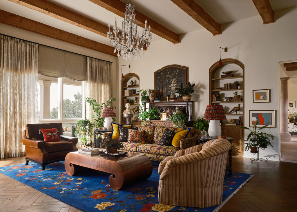 The rest of the home is equally curated, an intentional blend of rare antiques, custom elements, vintage art and unexpected details that have transformed the Mediterranean-style home into a sophisticated and lively retreat.