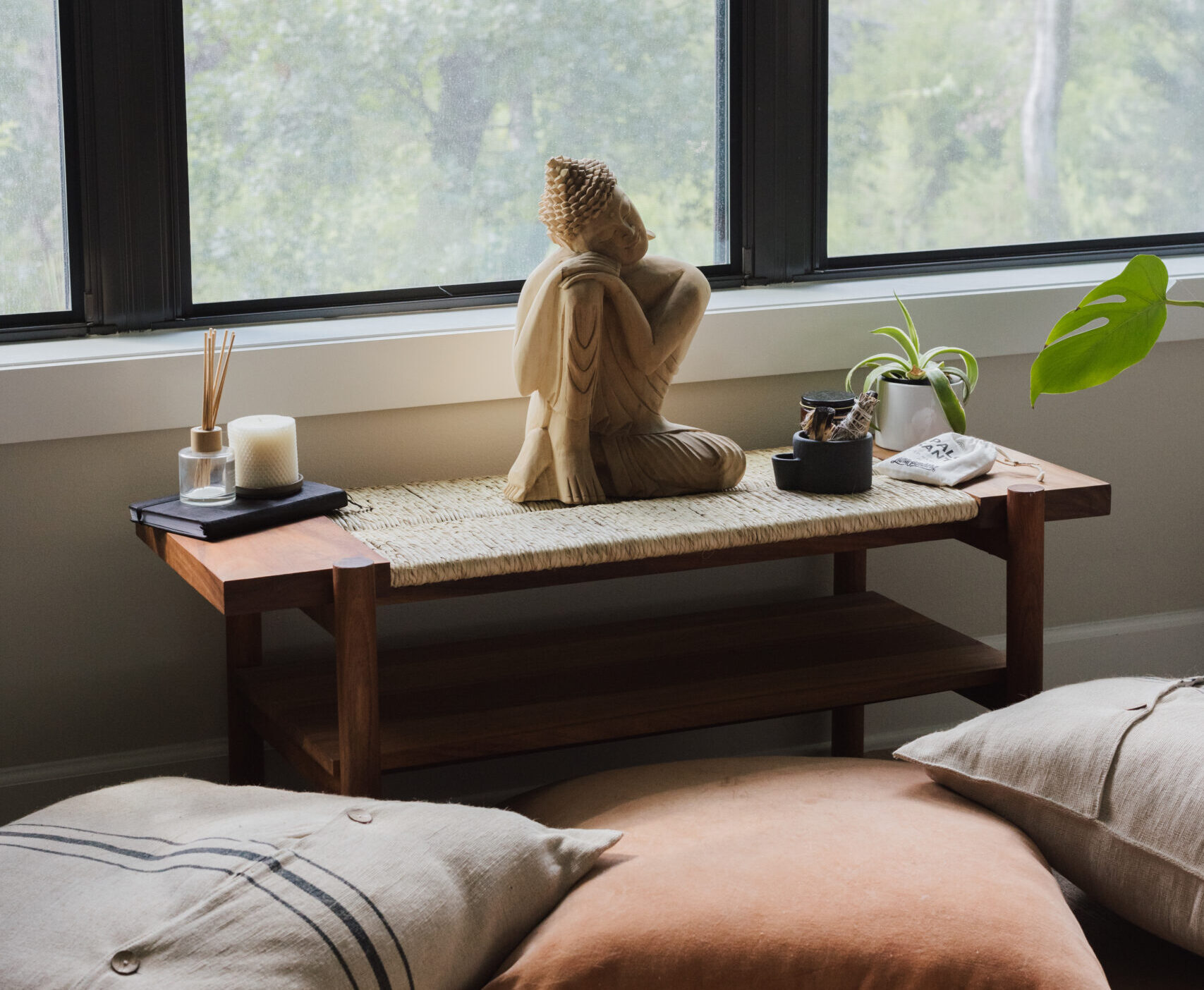 Interior designer Heidi Houdek’s work centers on curating grounded interiors through natural hues and tactile warmth.“ There is real psychological evidence that certain tones, like bright reds, can raise anxiety levels, so I tend to avoid loud, high-energy colors,” she says. Instead, she draws inspiration from the landscape around each project and often incorporates small zones for meditation or stillness. “Even on days when you aren’t actively using it, simply having that quiet, grounded area adds a sense of calm to the environment.”