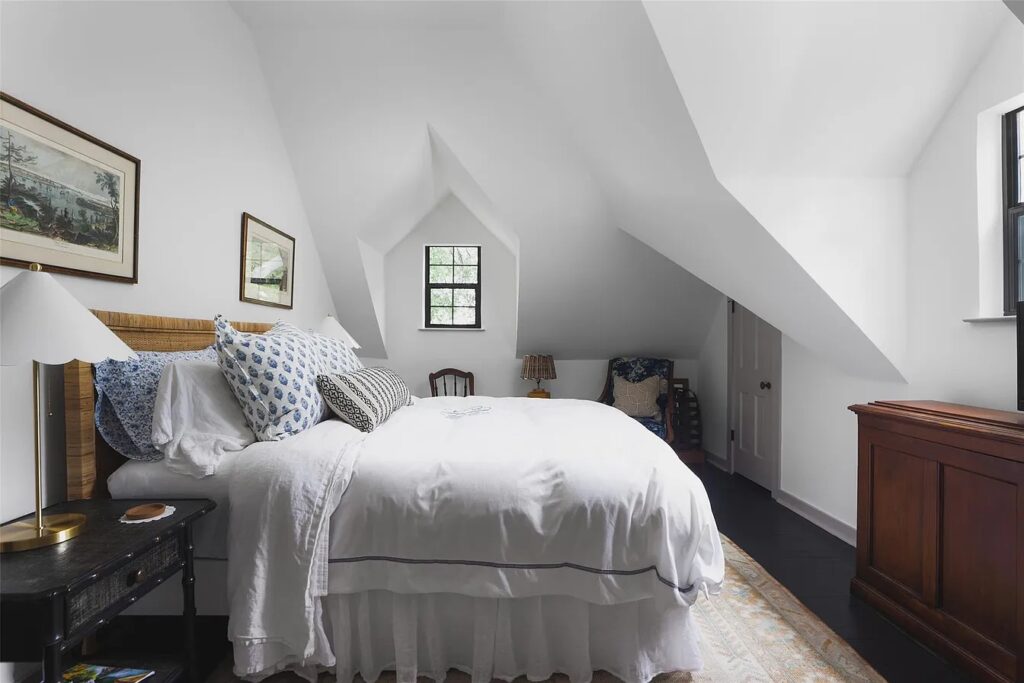 Right off Enfield Road, 1503 Lorrain is a gem of a home. Inside the sage green facade lies a tastefully updated interior that blends so seamlessly with the original character of the 1922 build, it’s hard to tell what’s new and what’s original—aside from the kitchen, which is far more in tune with the needs of a 2020s home chef. Every room has a distinct feel, but the showstopper is the bedroom inside the former second-story sunroom. Enter through the sliding glass doors into a space where three walls of windows wrap around the bed at the center. Outside, a hot tub is cleverly hidden within the pool, framed by a secondary cottage—perfect for an ADU rental or an in-law suite.