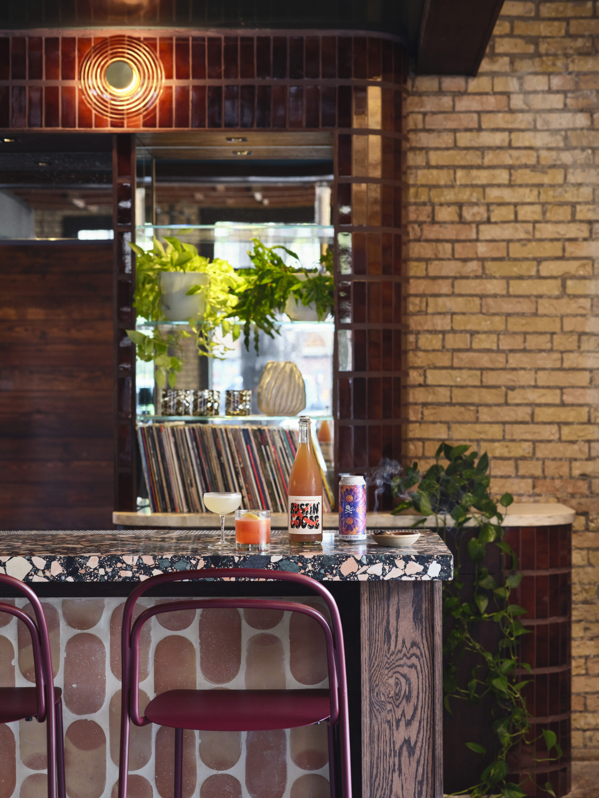 Marlow’s design and branding team includes architectural interior design by David Clark of Kartwheel, renovation by Havens Construction, branding by Drew Lakin and Bryan Butler, custom furniture by Mule Studio, hand-painted signage by Andrew Manning, reupholstery by Ambrose Upholstery, and plant design by Tropic of Capricorn.