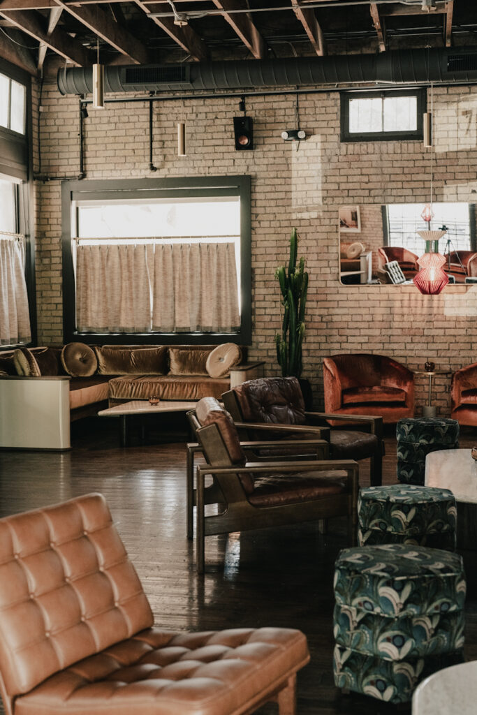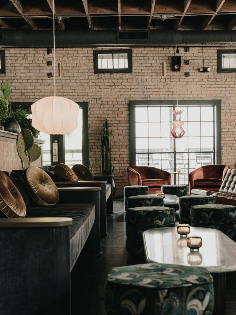 With high exposed ceilings, brick walls, and a balcony overlooking Waller Creek, Marlow mixes old charm with some new, modern touches. The space was crafted to feel timeless, vibrant, and alluring with design accents such as lush fabrics, bold tones, and unique clay tiles. Most elements are custom and handmade, with much stemming from the local community of artisans and creatives.