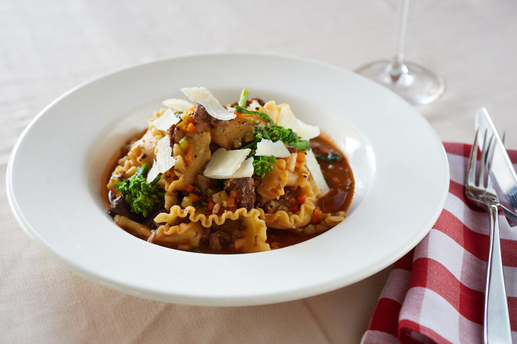 Salad fans will find plenty to love about the “Smaller Plates” offerings at Gina’s. A plate of golden beets dressed with endive, arugula, pistachios, Fourme D’Ambert cheeese, and a citrus vinaigrette get top marks for their earthy backbone and touches of sweetness, saltiness, and tang. But our favorite Gina’s salad was the “Gina’s Caesar,” an inventive take on the classic Caesar salad that mixes slightly-bitter radicchio with the typical romaine and features a bright and eggless lemon-anchovy vinaigrette. The egg is instead boiled and sieved over the salad, providing an extra bit of texture along with the expected richness.
