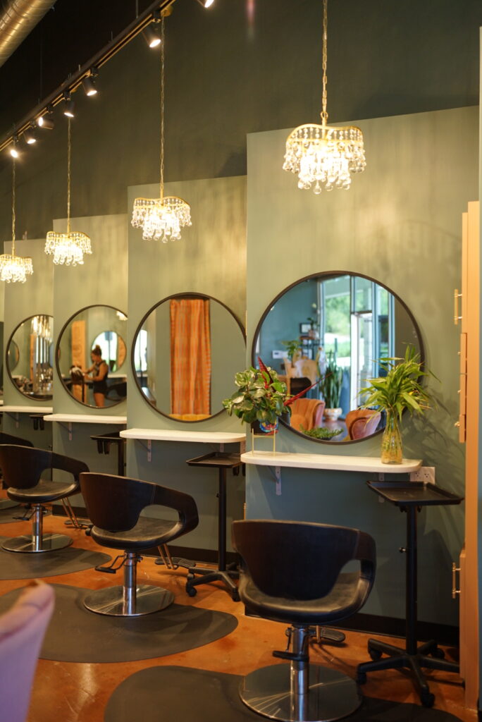 Both Melanie and Haven have a love and true passion for interior design and renovation, which you can see showcased in the salons, but also in their colorful vacation rental properties. Their style is eclectic, bright, funky, and modern boho chic. Melanie actually lit up when chatting about interior design, noting that this type of project provides a fun way to for her to stay creative. She actually utilizes her interior design talents for some clients as a side project. She loves incorporating art installations and featuring local artists in both the salons and in the rental homes. There is definitely a sense of glam at the newly remodeled Austin location, but Melanie notes that each salon has a bit of its own unique vibe.