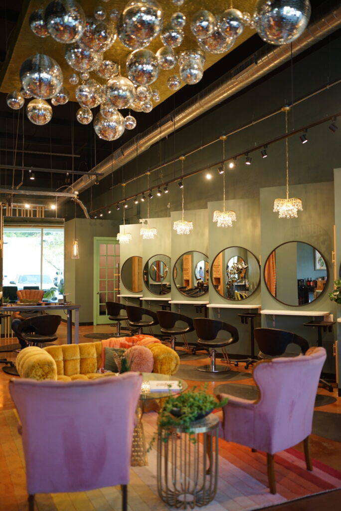 We found ourselves drawn the the allure of swirling, sparkly disco balls, rich textiles and pretty color palettes spotted recently on a popular salon’s Instagram account. The photos showcased the new swanky look of the expanded Austin location of Deep Roots ATX Salon. While the revamped vibes drew us in, it was the charm of co-owner Melanie Jacobs that really won us over.